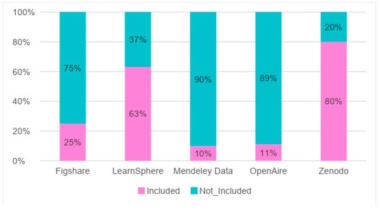 Initially, we observed that the datasets in Social Sciences across the data repositories remained stable, while this was not the case for the Educational Technology sector. While the number of objects supports the assumption that there are practices of Open Data in the field of Educational Technology, the difference between the two portals is puzzling. One possible explanation is that the search tools of Zenodo encompass a more accurate classification of the datasets. This is also confirmed by the data shown in Figure 2, which reports the distribution of the 82 selected datasets that were included and excluded across the five portals. However, while some data repositories specifically curate the topic of Educational Technology (LearnSphere), other generalist repositories (e.g., OpenAire) collect objects whose identification through the category of “educational” and “technolog*” is more imprecise. An exception of this was Zenodo, which mostly collects projects related to the Horizon 2020 program, and provides more elaborated instruments for the storage and retrieval of research data.