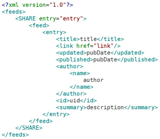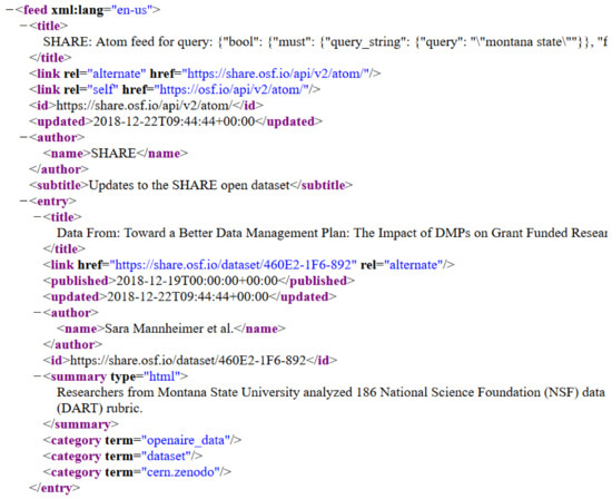 By way of example, consider the excerpt from a SHARE atom feed shown in