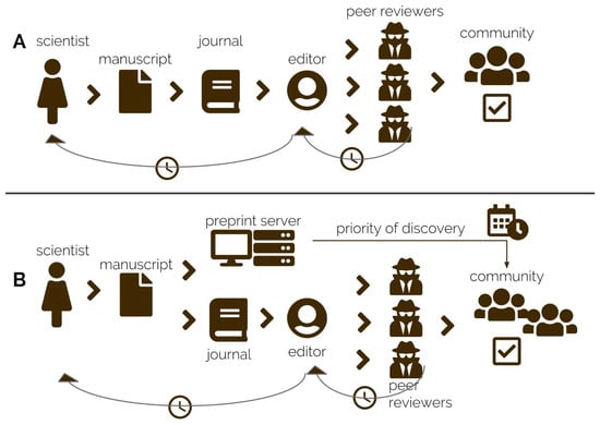 - Sarabipour, S.; Debat, H.J.; Emmott, E.; Burgess, S.J.; Schwessinger, B.; Hensel, Z. On the value of preprints: An early career researcher perspective. PLOS Biol. 2019, 17, e3000151. [Google Scholar] [CrossRef]