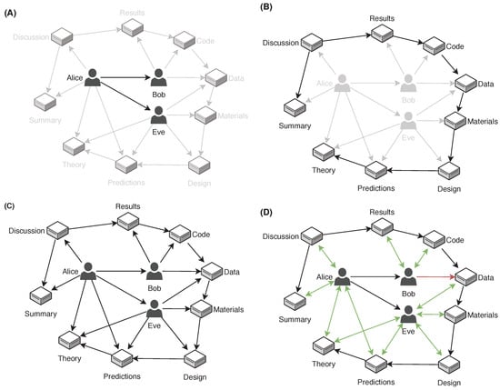 The scholarly paper seems an anachronistic form of communication in light of how we now know it undermines the functions it is supposed to serve. When no alternative communication form was feasible (i.e., before the Internet and the web), the scholarly paper seemed a reasonable and balanced form for communication. However, already in 1998, seven years after the first web browser was released, researchers associated with the scholarly publisher Elsevier suggested to make changes to the way scholars communicate scholarly research [11]. More specifically, they suggested to change the communication to a more modular form, which would help iterate research more frequently and increase feedback moments (high speed of feedback was essential to, for example, Nature’s rise during the early Twentieth Century; [12]). Throughout the years, others also suggested various perspectives on modularity [13,14] and suggested micro- and nano-publications [14,15]. One example of modular, stepwise research communication is depicted in Figure 1.