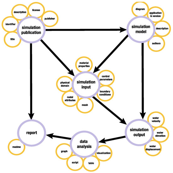 Many institutional data repositories, such as those based on Data Verse [5], have generic data and metadata models and policies that facilitate depositing datasets derived from different domains and generated by all types of research methods. Moreover, many domain specific repositories map to a generic metadata standard [6,7] as well as the Cyverse platform that combines data analysis and repository functions for plant genomics data [8]. While generic metadata schemas allow interoperability with other repositories and aggregators [9], they fall short on describing the complexity of simulation projects. Simulation data accessible in these repositories are represented as flat lists of files whose relations to the processes from which they derive and more specialized descriptions may be included in the file names, in the abstract, in a readme file, or in an adjacent publication. There are hybrid metadata models such as the Core Scientific Metadata Model [10], and the one developed for the Digital Rocks Portal [11] that accommodate experiments and simulations that use material samples as a departure. Such models allow representing complex data structures including multiple experiments and or simulations. A simpler hybrid data structure combining general information with project specific parameters was developed for the DataCenterHub, which hosts experimental and numerical simulation datasets [12]. Departing from a landing page with general information, metadata and the different data components are displayed in tables. In DS, we saw the need and the opportunity to develop a model specifically to represent all the components and complex structure of simulation data. The methods used to develop it were similar to those followed to design experimental and field research models and services in DS [13] and in other data cyberinfrastructure projects [11,14].