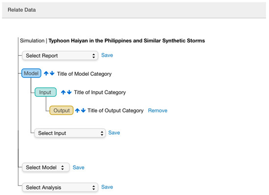 Once users create and add files to categories, the last step, Relate Data, allows them to associate inputs, outputs, analysis, and reports (see Figure 6). This step is key to how data will be represented as a publication. Simultaneously, users can check how the structure and description of their dataset is rendered in the Publication View. This allows going back and forth and making changes at different times in the process.