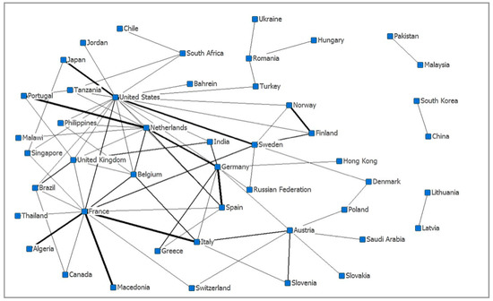 Figure 3 shows that the United States and France are the countries that have the most papers in collaboration with other countries—24 papers were elaborated in collaboration with at least one American or French author. On the other hand, the most productive countries (Germany and France) did not establish international partnerships that address competence-based management.