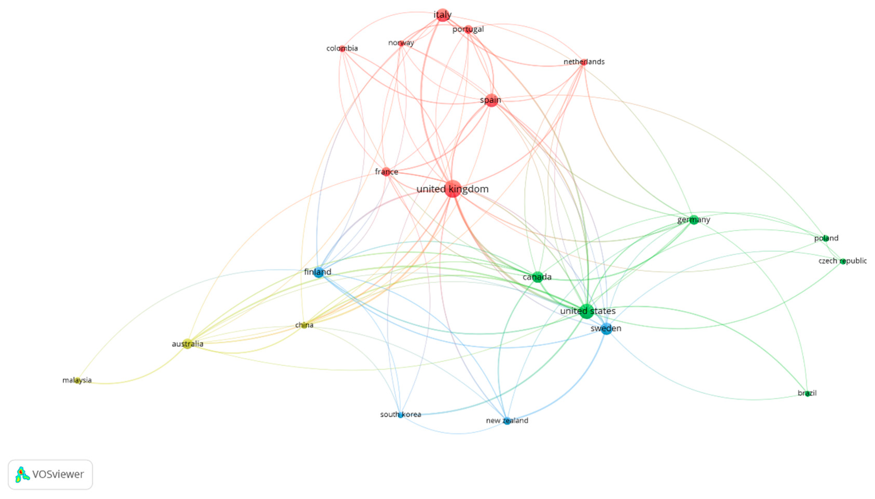 | Collaboration indicators | Collaboration between countries | United Kingdom, United States, Sweden and Australia are the leaders of four collaboration clusters | The largest number of collaborations take place between European countries |