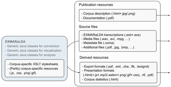 - Jettka, D.; Stein, D. The HZSK Repository: Implementation, Features, and Use Cases of a Repository for Spoken Language Corpora. D-Lib Mag. 2014, 20. [Google Scholar] [CrossRef]