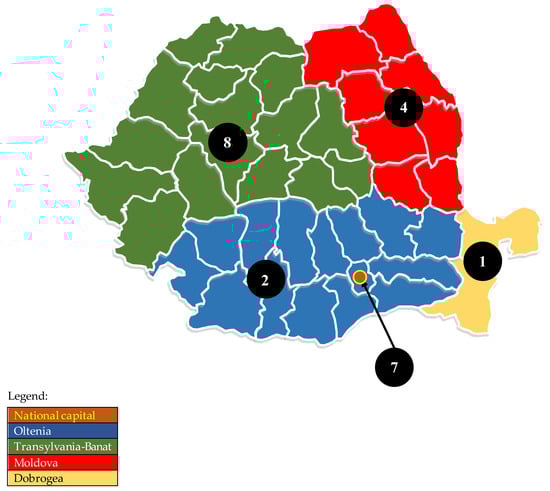 Despite the promise to deal with communication science topics, 22 Romanian journals are too many given the size of the field of communication science in Romania. By eliminating the “catch-all” journals, only eight titles remain in focus (number 1, 2, 12, 13, 15, 16, 19, and 21 in Table 1), aiming at the advancement of communication sciences, grouped in two major cities: the national capital and Cluj-Napoca, the historical capital of the Transylvania region, as seen in Figure 3 below.