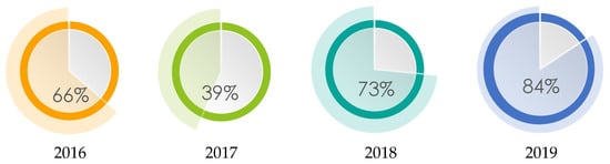 The present study draws its data from the primary source of information on the public educational network in Uzbekistan: ZiyoNET2. The data cover a representative sample of 2025 individuals who obtained either a Ph.D. or D.Sc. degree from January 2016 to March 2019. Given our interest in evaluating the academic performance of scholars based on the quality of the journal in which their articles were published, only international journals were included. The exclusion of individuals whose articles have not been either published in English or international journals brings the sample to 1110 scholars. Figure 1 illustrates the annual percentage of academics who published their articles according to the criteria. In general, over the past four years, two out of three academics in Uzbekistan published their work in English and international journals.