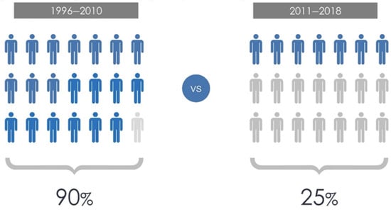 The history of the open-access movement begins with the concern of librarians toward the ever-increasing subscription fees of scholarly journals, which was soon reinforced by the advent of the Internet []. The subscription prices increased for several reasons. First, as the baby boomer generation reached the age where many were finishing their Ph.D. degrees, scholarly journals began to publish more articles to accommodate the ever-increasing number of research papers []. Another key factor contributed to an increase in subscription fees—the advent of new fields of study including but not limited to nanotechnology and artificial intelligence—a phenomenon that occurred parallel to when baby boomers began to occupy higher education faculty positions []. Commercialization of scientific publishing has also played an important role in increasing subscription fees.
