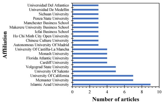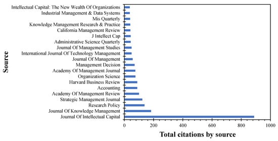 Taking into account the results of the significance of the 20 most important journals, Figure 9 shows the 20 most-cited journals; in the same way, the “Journal of Intellectual Capital” prevailed among the others, thus corroborating the importance of this journal in this area of knowledge, which helps to strengthen institutions and companies.