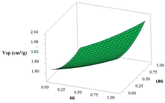 Response surface showing the effect of xanthan gum (XG) and locust bean gum (LBG) on the specific volume (Vsp) of biscuits.