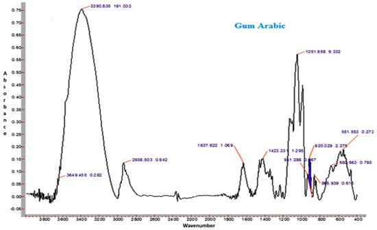 Figure 5. Representative FTIR spectrum of spray-dried nutritionally rich honey powder fortified with gum arabic (GA).