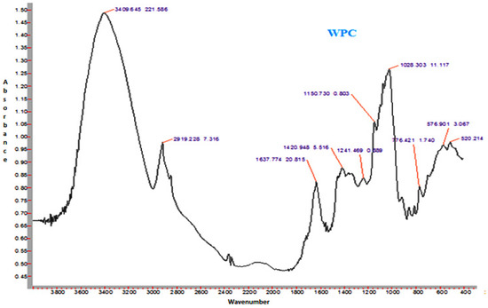 Figure 6. Representative FTIR spectrum of spray-dried nutritionally rich honey powder fortified with whey protein concentrate (WPC).