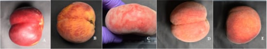 - Farina, V.; Lo Bianco, R. Mazzaglia Evaluation of Late-Maturing Peach and Nectarine Fruit Quality by Chemical, Physical, and Sensory Determinations. Agriculture 2019, 9, 189. [Google Scholar] [CrossRef]