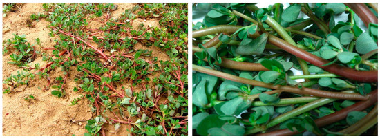 - Uddin, M.K.; Juraimi, A.S.; Hossain, M.S.; Nahar, M.A.U.; Ali, M.E.; Rahman, M.M. Purslane weed (Portulaca oleracea): A prospective plant source of nutrition, omega-3 fatty acid, and antioxidant attributes. Sci. World J. 2014, 2014, 951019. [Google Scholar] [CrossRef] [PubMed]