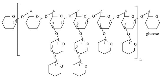 Typical structure of the D-fraction with (1→6)-glucan having a (1→3)-branched chain [49].