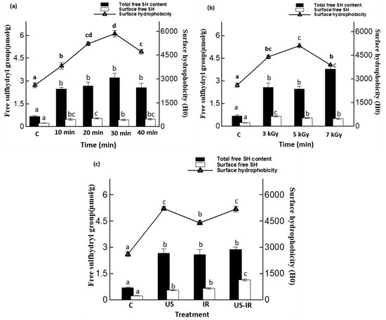 3.2. Sulfhydryl Groups and Surface Hydrophobicity