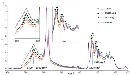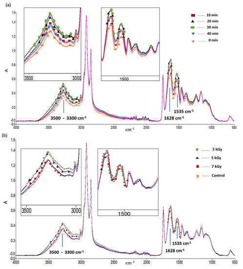 - Dogan, A.; Siyakus, G.; Severcan, F. FTIR spectroscopic characterization of irradiated hazelnut (Corylus avellana L.). Food Chem. 2007, 100, 1106–1114. [Google Scholar] [CrossRef]