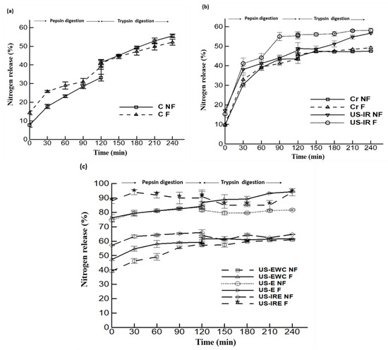 - Morel, M.H.; Dehlon, P.; Autran, J.C.; Leygue, J.P.; Bar-L’Helgouac’h, C. Effects of Temperature, Sonication Time, and Power Settings on Size Distribution and Extractability of Total Wheat Flour Proteins as Determined by Size-Exclusion High-Performance Liquid Chromatography. Cereal Chem. J. 2000, 77, 685–691. [Google Scholar] [CrossRef]