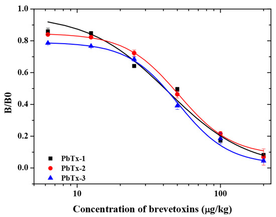 For the icELISA procedure, the 50 μL 10 mM PBS was replaced by 50 μL series concentration of PbTx-2 standard solution at step 4.