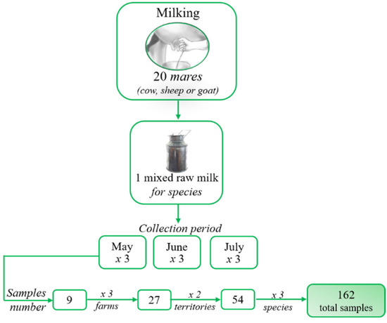 Schematic representation of raw milk samples collection analyzed.