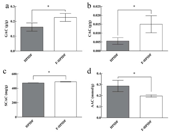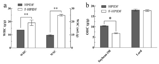 3.4.1. WHC, WSC, and OHC of HPIDF/F-HPIDF