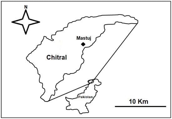 The study area is part of the Hindukush Mountain range and is located at the extreme north of Chitral District (Figure 1). The area is populated by the Kho people, who speak Khowar, the dominant linguistic group in Chitral. The Kho community has been living in the area for centuries. They are horticulturists that also rear livestock, and many individuals earn their livelihood from diverse types of off-farm activities. They have a long-term, inextricable link with nature and local resources, and they have amassed a remarkable store of traditional ecological and cultural knowledge on the local ecology and environment.