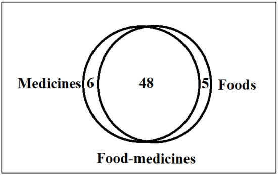 There are hundreds of field ethnobotanical studies that have been devoted to either food uses or medicinal uses of wild species, but to date the subject of food–medicines in cultural contexts is poorly researched even though studies have shown a general resurgence of interest in wild food plants for their nutritional and medicinal values so as to broaden the diversity of the human diet [15,16]. Kunakova et al. [17] argued that knowledge on the positive pharmacological potential of WFPs could provide a better opportunity to integrate these ingredients into the modern pharmacopeia to develop functional products with useful benefits.