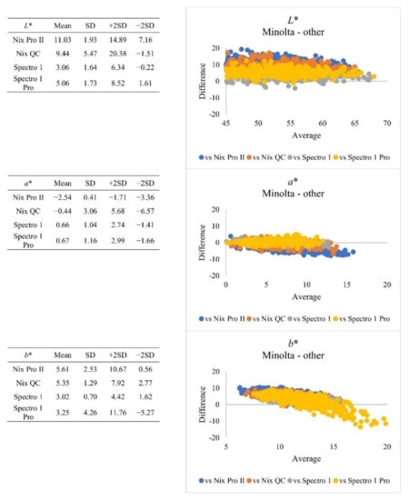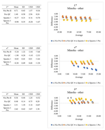 | Coordinate | Minolta | Nix Pro II | Nix QC | Spectro 1 | Spectro 1 Pro | |
