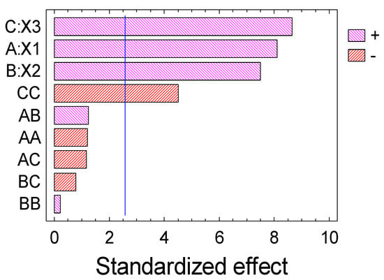 ANOVA (Table 4) and a Pareto graph (Figure 2) for the three factors explain that the Box–Behnken quadratic model can be sufficiently applied to simulate the xanthan (Y) sulfation process.