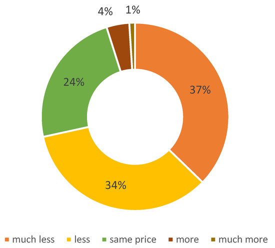 The majority of respondents (71%) are willing to pay less or much less for “cell-based meat” than for conventionally produced meat (or even nothing at all), compared to 24% who are willing to pay the same price as conventional meat, whereas only 5% are willing to pay more or much more (Figure 2).