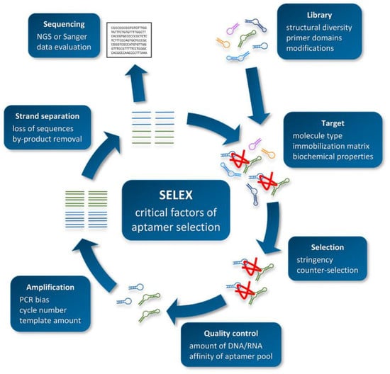 Schematic overview of the SELEX procedure. Reproduced with permission from [142]. Copyright Biotechnology and Applied Biochemistry, 2021.