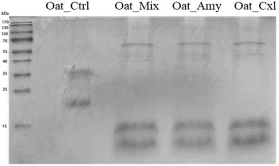 3.2. Effects of the Enzymatic Treatments on the Primary Structure of the Oat Press Cake Proteins
