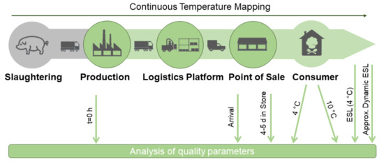 - Mack, M.; Dittmer, P.; Veigt, M.; Kus, M.; Nehmiz, U.; Kreyenschmidt, J. Quality tracing in meat supply chains. Philos. Trans. A Math. Phys. Eng. Sci. 2014, 372, 20130308. [Google Scholar] [CrossRef]