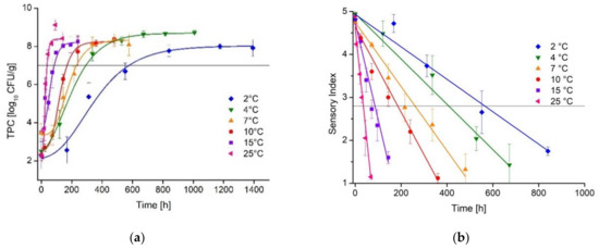 - Koutsoumanis, K.; Giannakourou, M.; Taoukis, P.; Nychas, G. Application of shelf life decision system (SLDS) to marine cultured fish quality. Int. J. Food Microbiol. 2002, 73, 375–382. [Google Scholar] [CrossRef]