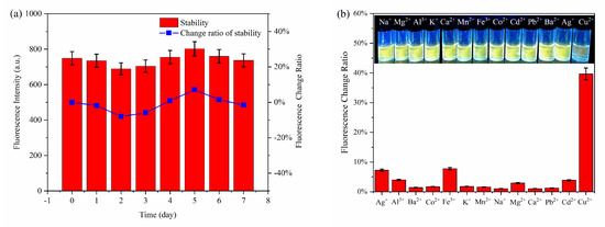 The stability (a) and the selectivity (b) of the fluorescent probe.