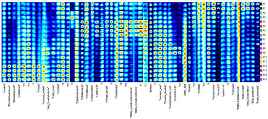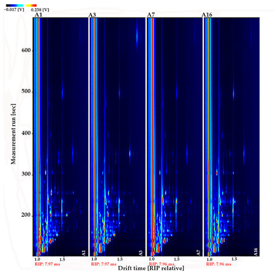 2.6. Analysis of Volatile Constituents by Headspace Gas Chromatography-Ion Mobility Spectrometry (HS-GC-IMS)
