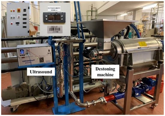 The experimental system consists of the ultrasound and destoning machine, used for the tests at the Department of Agricultural, Food, and Environmental Sciences of the University of Perugia (Italy).