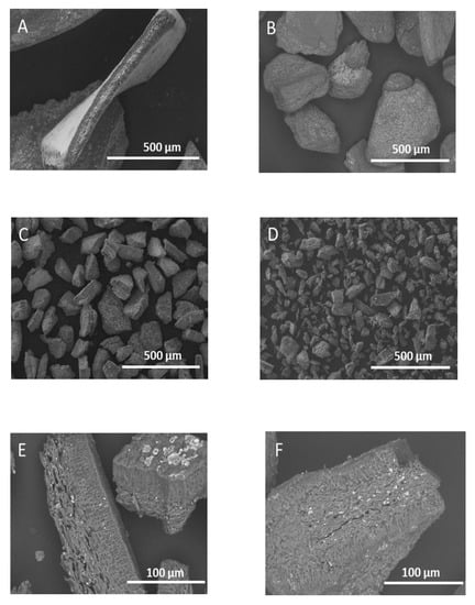 The microstructure of the different size fractions was analyzed by SEM. The cross-sectional area of the largest size fraction (>2000 μm) (