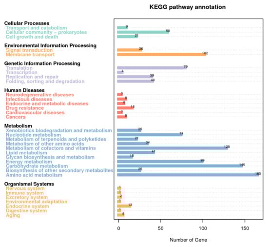 - Kanehisa, M.; Goto, S.; Hattori, M.; Aoki-Kinoshita, K.F.; Itoh, M.; Kawashima, S.; Katayama, T.; Araki, M.; Hirakawa, M. From genomics to chemical genomics: New developments in KEGG. Nucleic Acids Res. 2006, 34, D354–D357. [Google Scholar] [CrossRef]