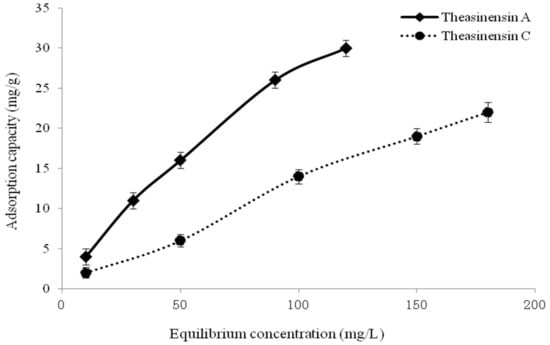 The adsorption process of theasinensins were fitted by Langmuir isotherm equation (Equation (2)):