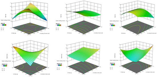 - Fathiraja, P.; Gopalrajan, S.; Karunanithi, M.; Nagarajan, M.; Obaiah, M.C.; Durairaj, S.; Neethirajan, N. Response surface methodology model to optimize concentration of agar, alginate and carrageenan for the improved properties of biopolymer film. Polym. Bull. 2021, 123AD, 1–27. [Google Scholar] [CrossRef]