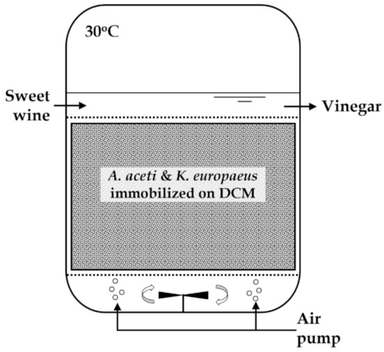 - Gullo, M.; Verzelloni, E.; Canonico, M. Aerobic submerged fermentation by acetic acid bacteria for vinegar production: Process and biotechnological aspects. Process. Biochem. 2014, 49, 1571–1579. [Google Scholar] [CrossRef] [Green Version]