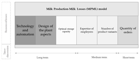 Collecting the causes and sources of losses in the dairy industry, we created the Milk Production-Milk Losses (MPML) model, which is shown in Figure 3.