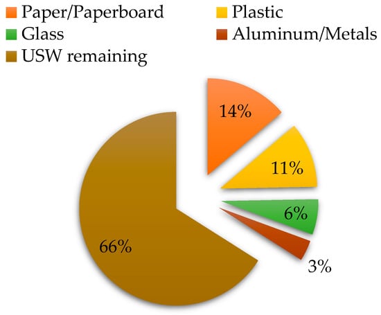 Distribution of packaging materials as part of the generation of urban solid waste (USW) [].