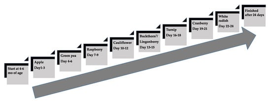 - Harris, G.; Mason, S. Are There Sensitive Periods for Food Acceptance in Infancy? Curr. Nutr. Rep. 2017, 6, 190–196. [Google Scholar] [CrossRef] [PubMed]
