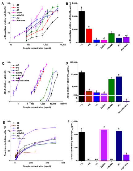 The acetylcholinesterase (AChE) inhibitory properties of the extracts were tested using a 96-well microplate colorimetric method [