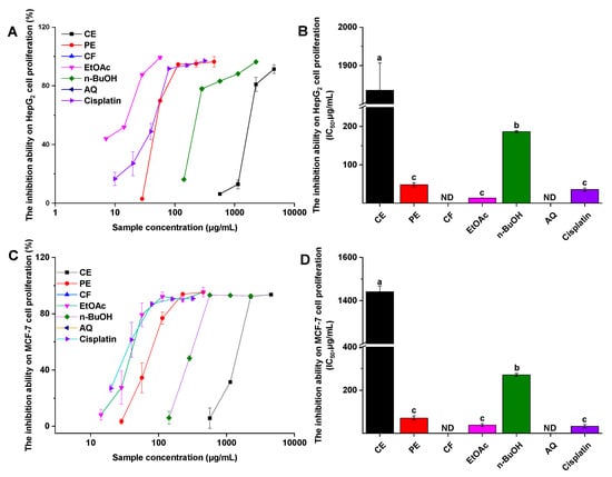 The inhibition on HepG2 and MCF-7 cell proliferation was measured by using the CCK-8 assay according to our previous report [