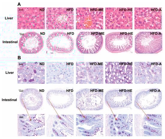 48]. Histological analysis of the liver and intestinal tissues by H&E staining are shown in