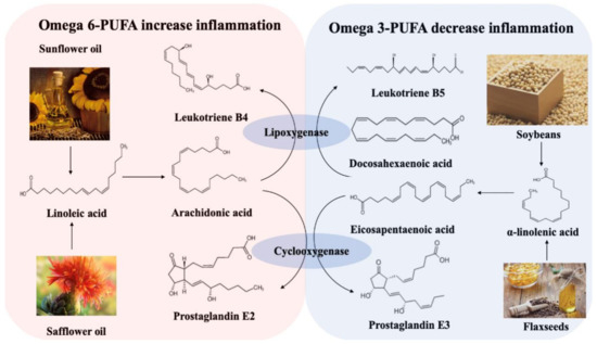 Metabolism of omega-6 and omega-3 polyunsaturated fatty acids [].