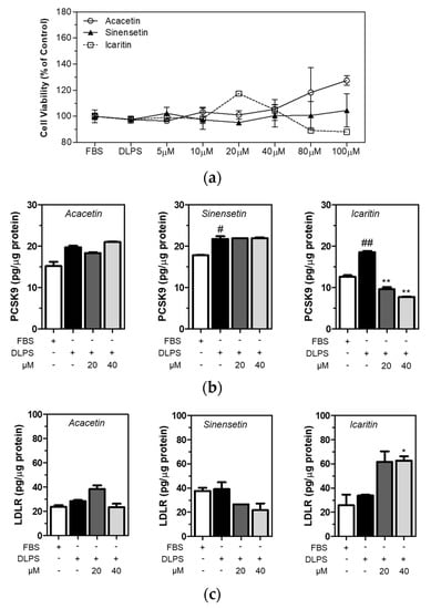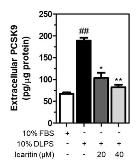 3.6. Icaritin Significantly Suppressed the Extracellular PCSK9 Level Increased by DLPS in HepG2 Cells